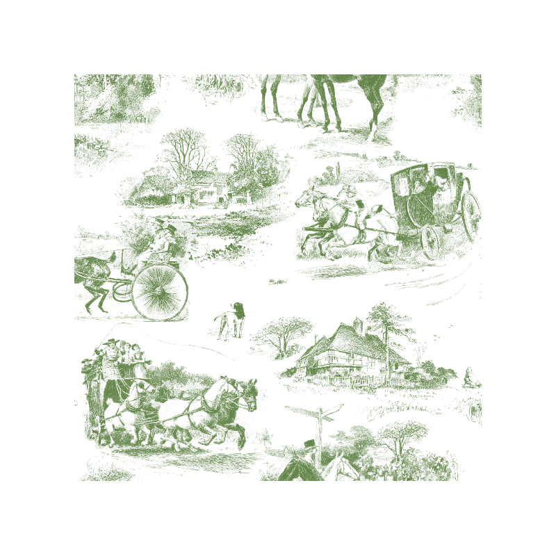 Wzór 45163 | Konna Podróż DyliŻansem - Biało-Zielony Wzór Toile