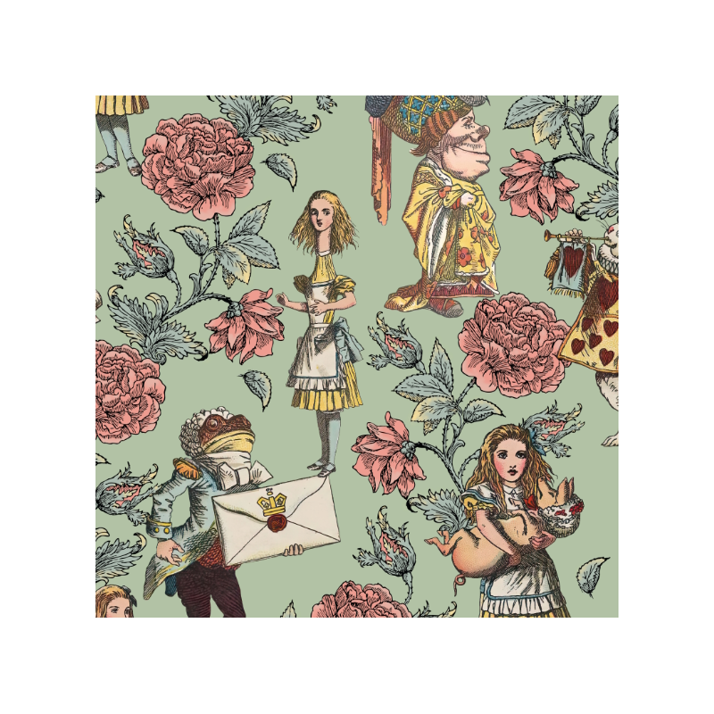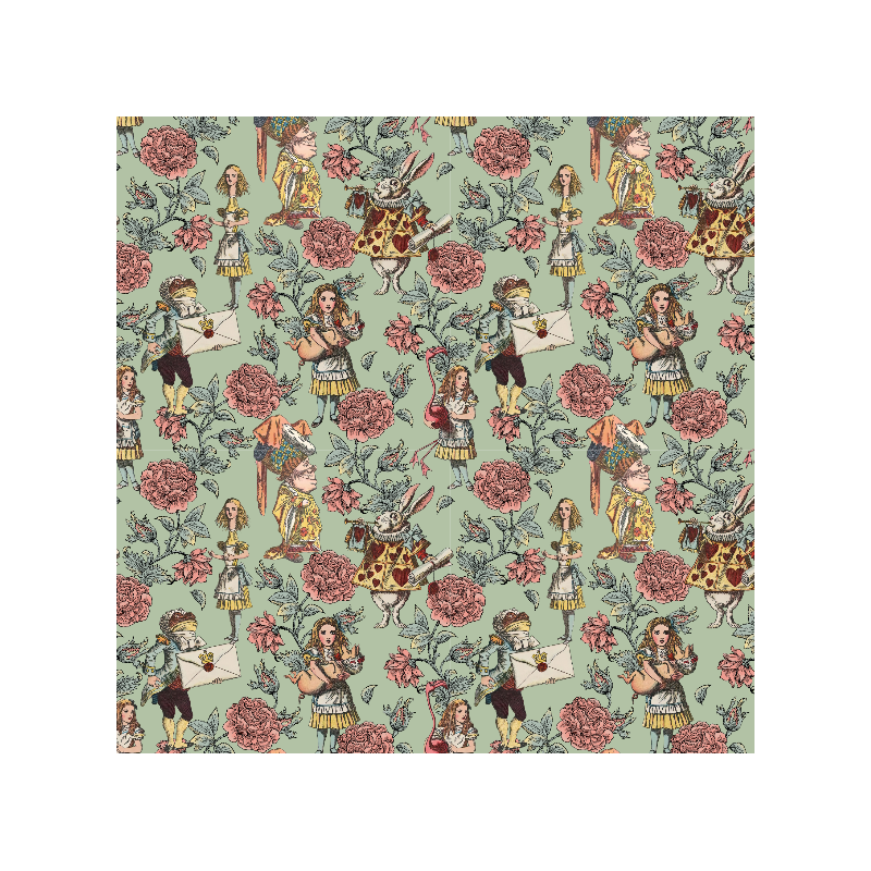 Wzór 43767 | Alicja w Krainie Czarów i Ogród Różany - Zielone Tło