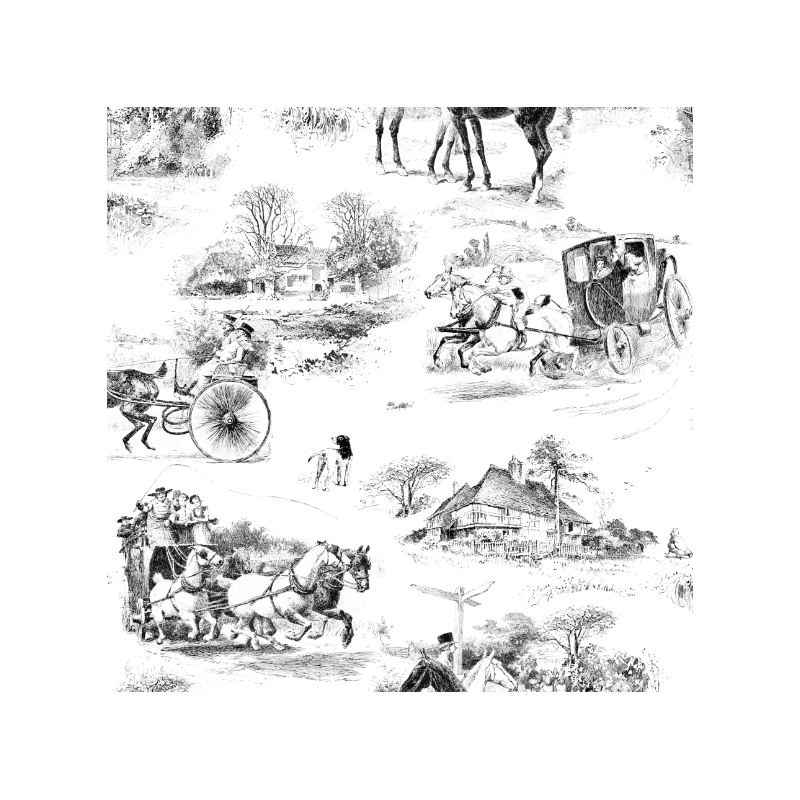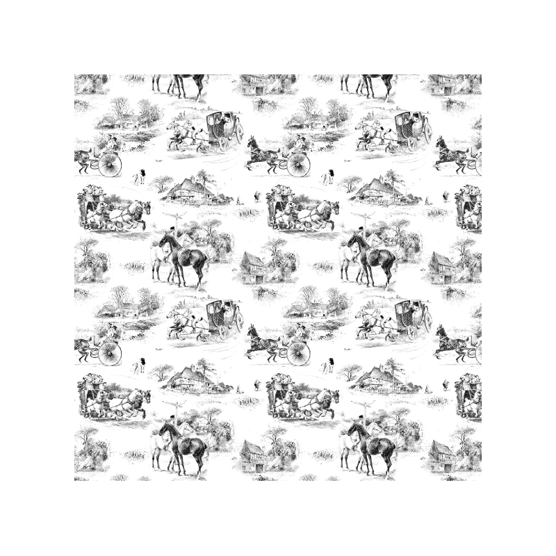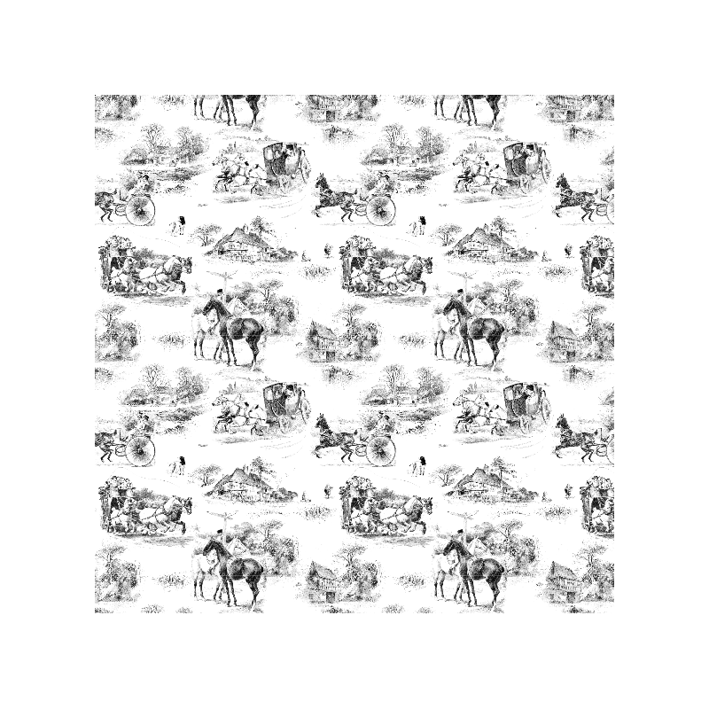 Wzór 45161 | Konna Podróż Dyliżansem - Czarno-Biały Wzór Toile