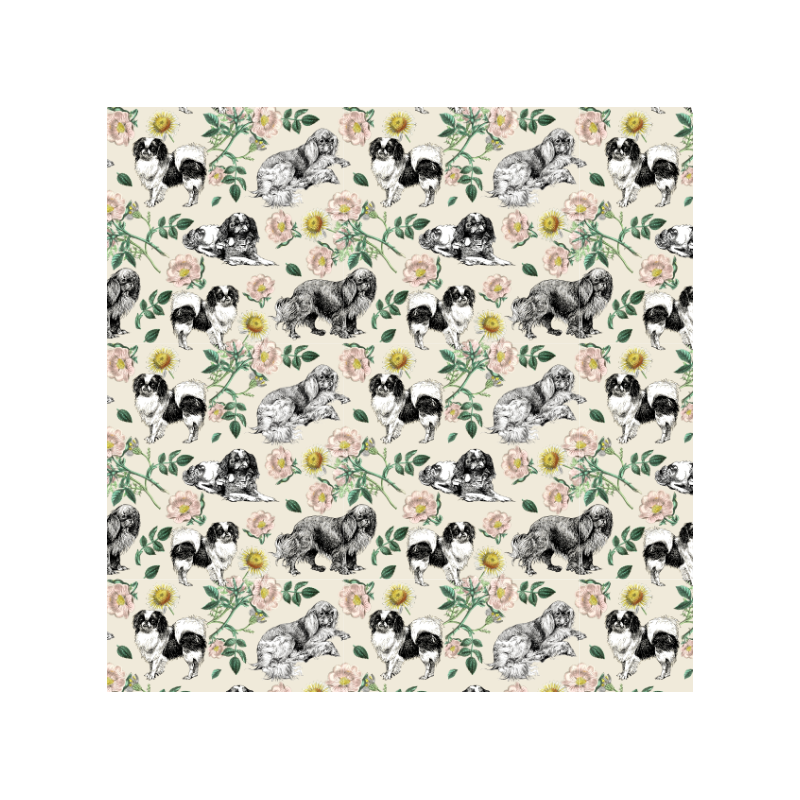 Wzór 45166 | Pieski Spaniele Miniaturowe i Dzika Róża - Kremowe Tło