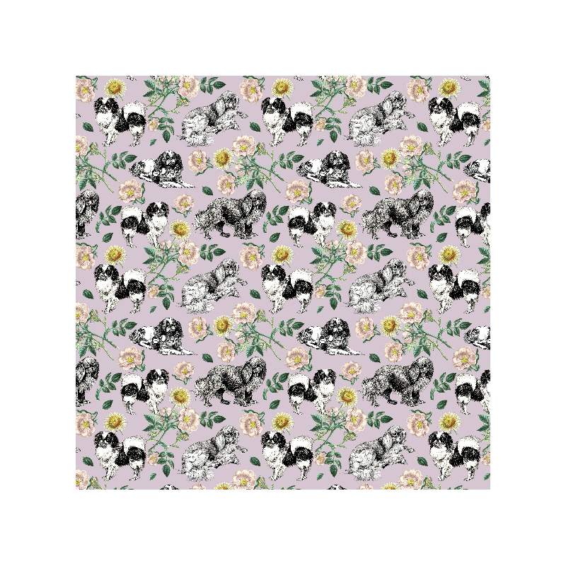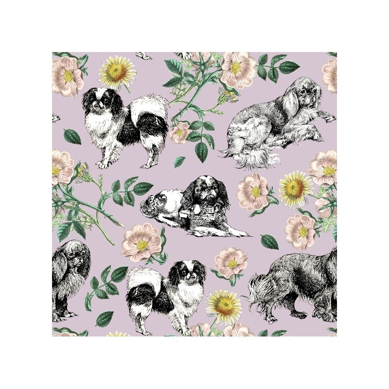 Wzór 45168 | Pieski Spaniele Miniaturowe i Dzika Róża - Lawendowe Tło