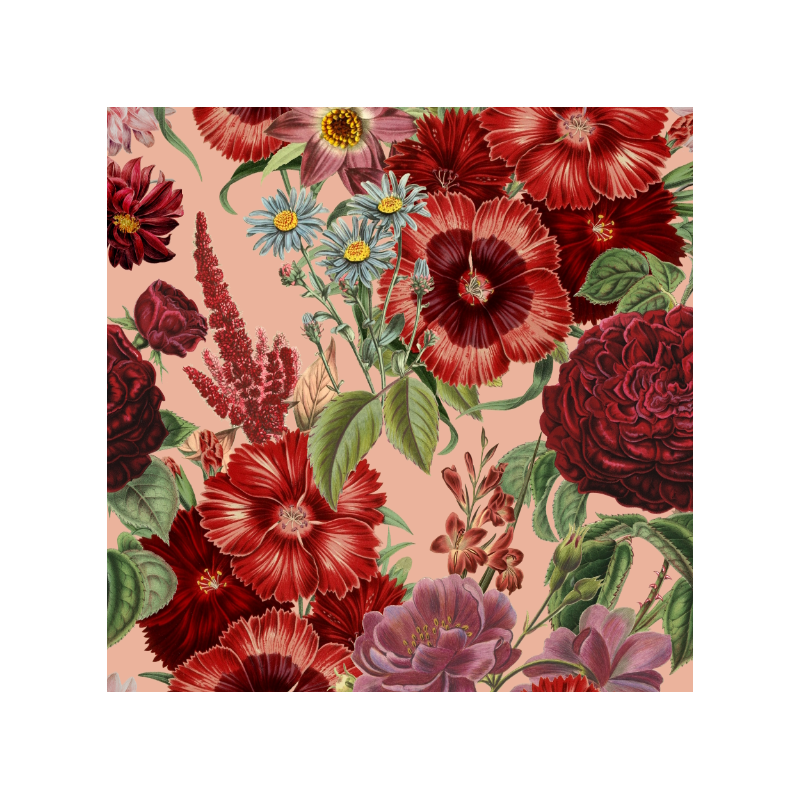 Wzór 51498 | Duże Bordowe Kwiaty na Różowym Tle