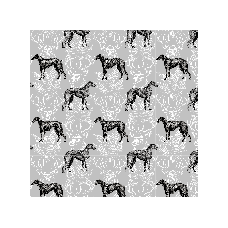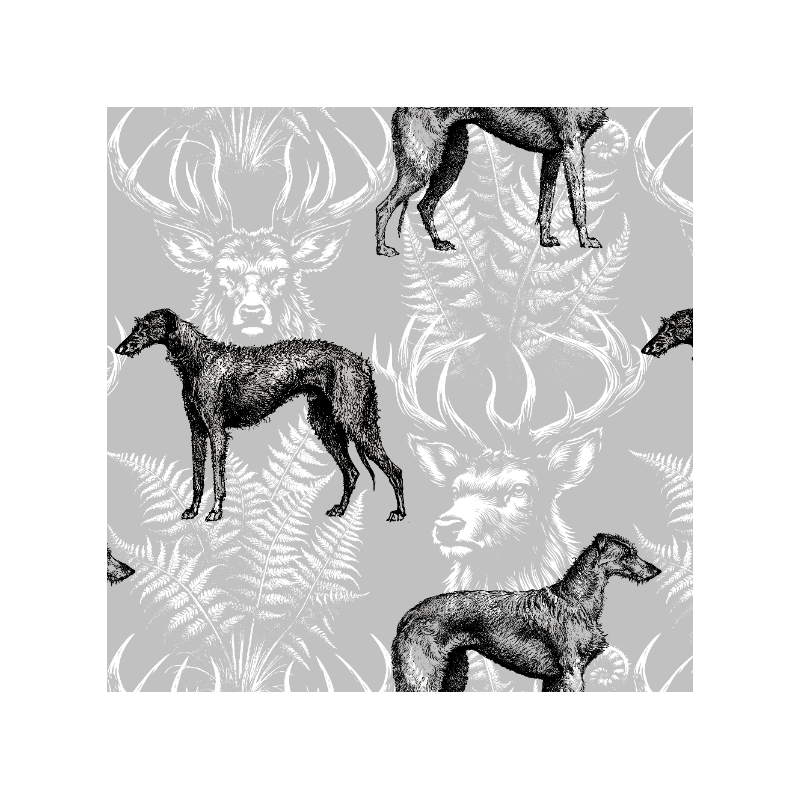 Wzór 51501 | Psy Deerhound i Motywy Leśne z Jeleniem - Popielate Tło